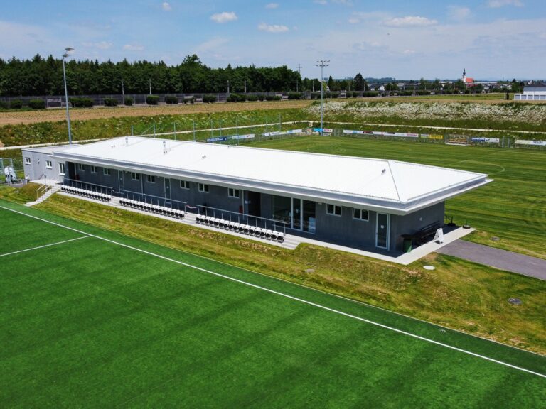 Bereits im November 2020, nach 14 monatiger Ausführungszeit, wurde das neue Sportzentrum in Gunskirchen an den Bauherren übergeben. Nachdem es nun die Rahmenbedingungen rund um das Thema Corona zulassen, wird die neue Arena – mit der rund 200 Zuschauer fassenden Tribüne – voraussichtlich am 13. August, mit einem Match gegen den SV Pichl aus der Nachbargemeinde, offiziell eingeweiht.