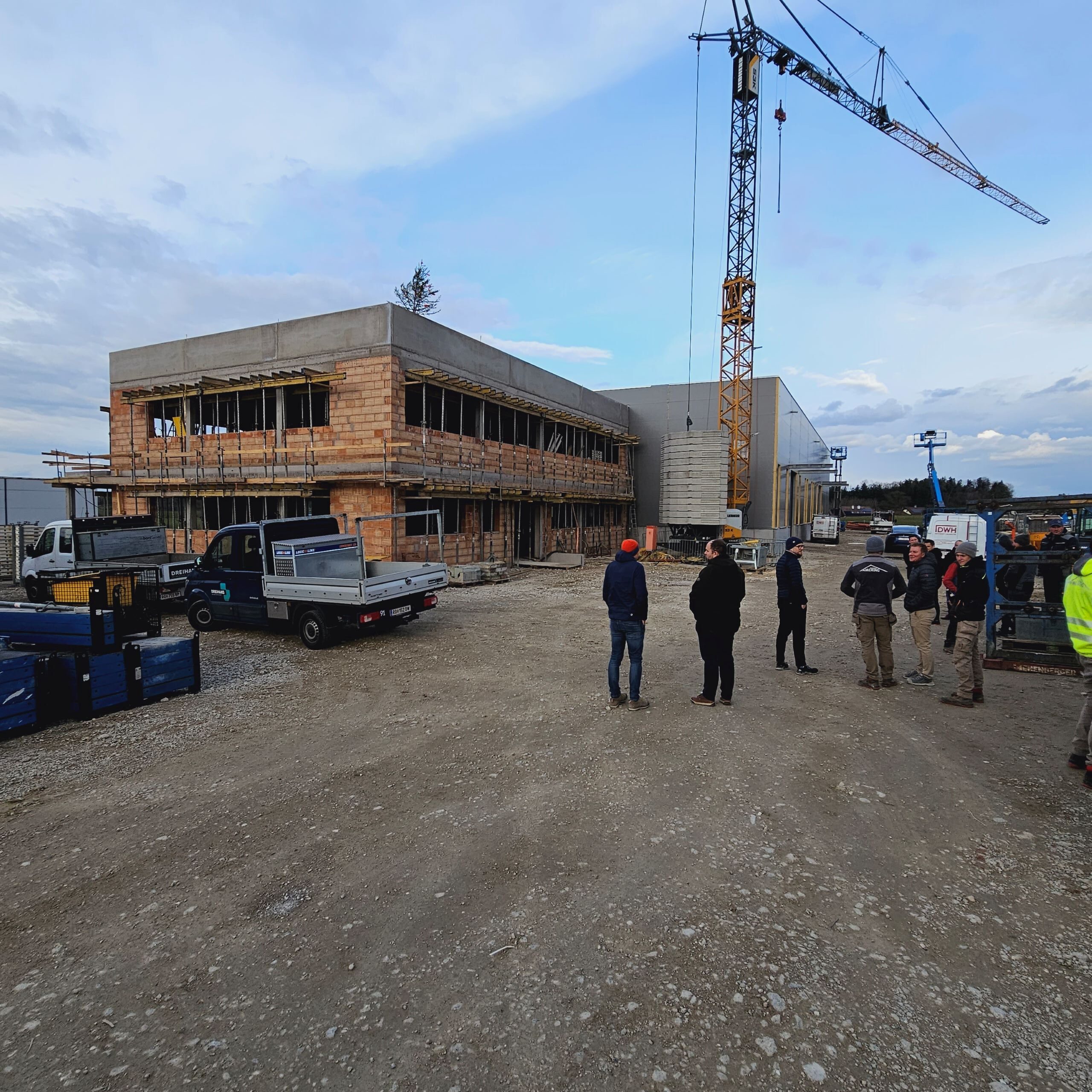 In den kommenden Wochen werden nun die monolithische Bodenplatte hergestellt und mit den Ausbauarbeiten vom Bürogebäude begonnen.