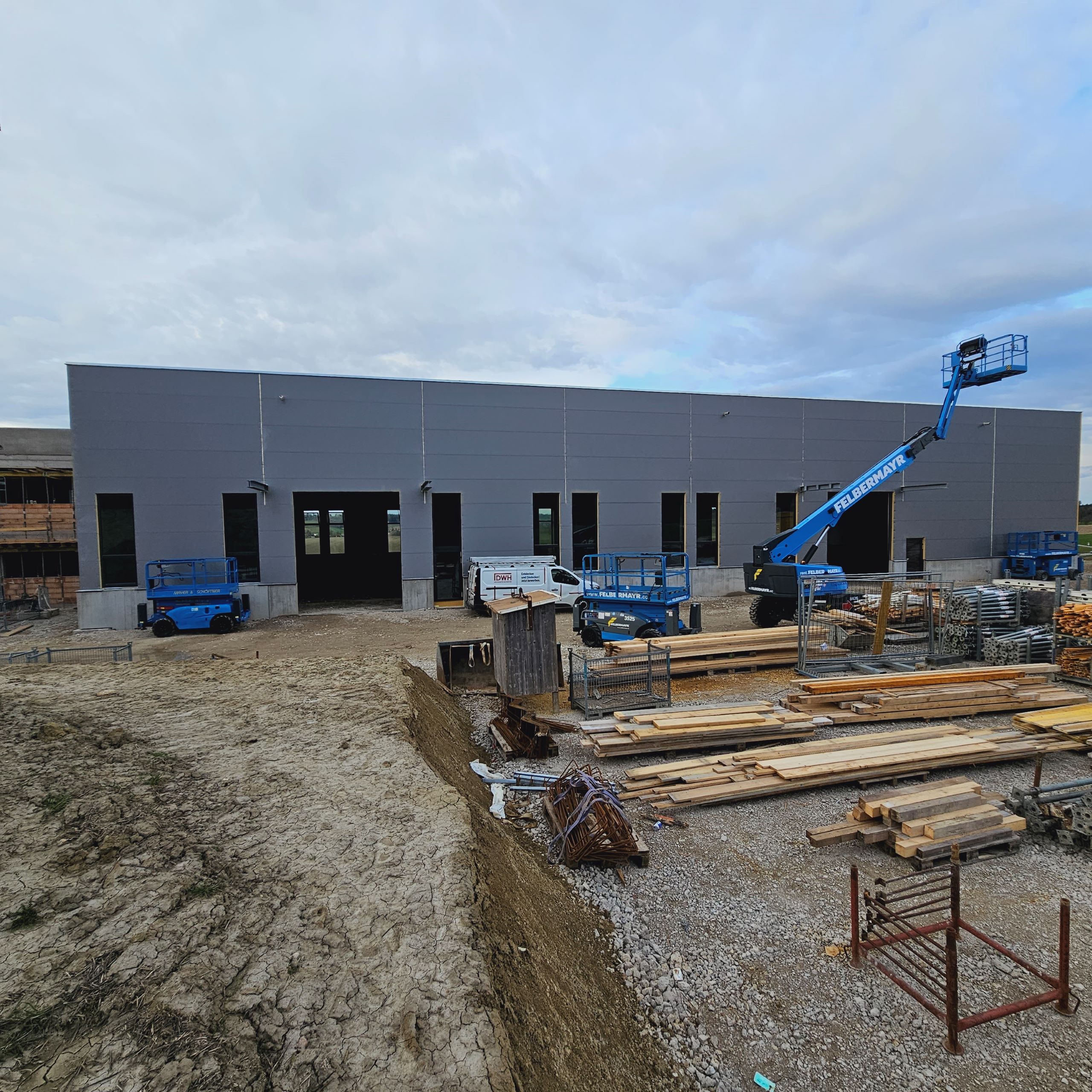 Schon im August 2024 werden die Arbeiten am Neubau abgeschlossen sein und der neue Firmenstandort wird an den Bauherrn übergeben.