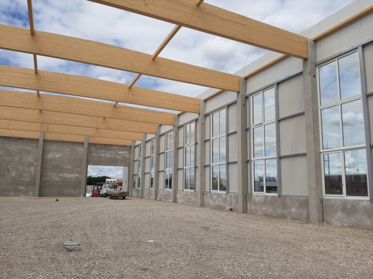 Die nächsten Schritte starten noch diese Woche, so wird die Tragschale für das neue Dach der rund 1.150m2 großen Halle hergestellt, sowie mit dem Innenausbau des neuen rund 300m2 großen Büros begonnen.