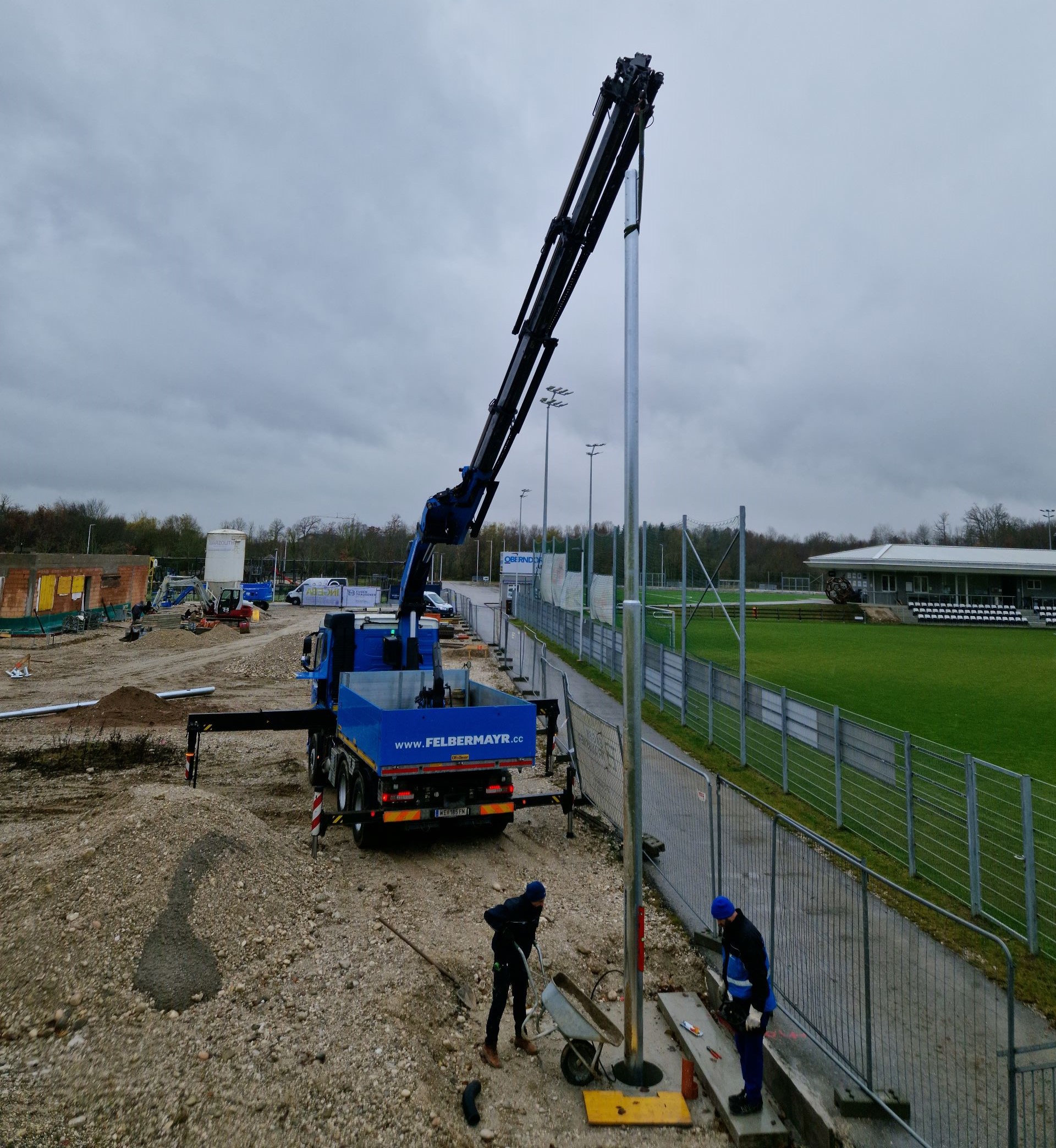 Bei den Tennisplätzen wurden die Flutlichtmasten aufgestellt und eingerichtet. Die LED-Paneele werden im Frühjahr 2024 montiert und auf die Plätze ausgerichtet.